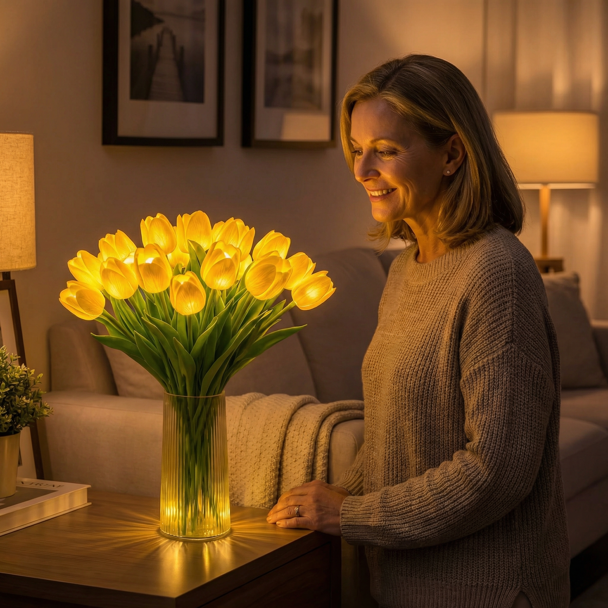 Gdy zapada zmrok, tulipany budzą się do życia — delikatne, ciepłe światło LED wypełnia pokój magicznym blaskiem. Idealna lampka nocna, która nie razi oczu i tworzy wyjątkowy klimat.