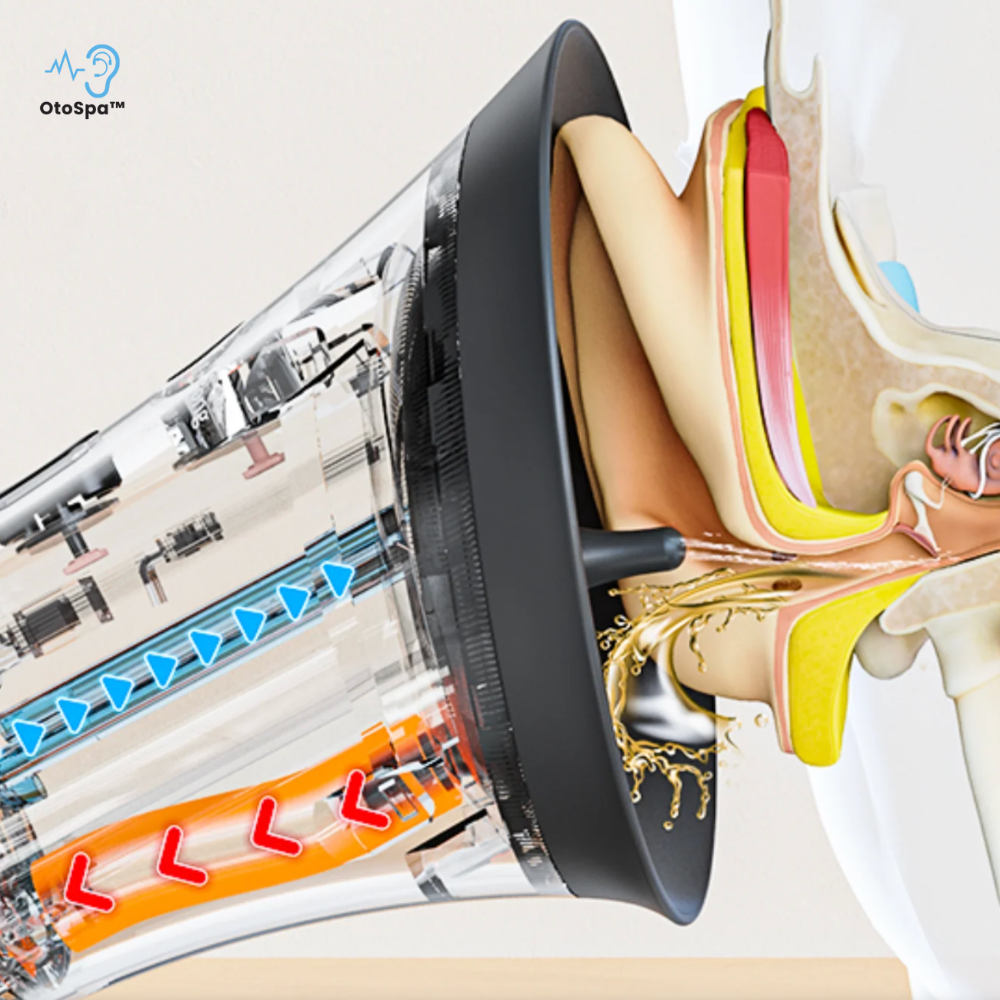 Zaawansowany system wykorzystuje czyszczenie w zakresie 360° z efektem wiru, który skutecznie dociera w głąb kanału słuchowego, rozbijając i usuwając uporczywą woskowinę. Rezultat? Dokładne oczyszczenie i natychmiastowa ulga.